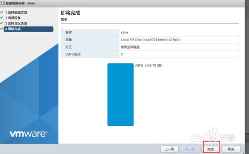完成数据存储的创建,因选择是使用全部磁盘,会给出提示,选择是