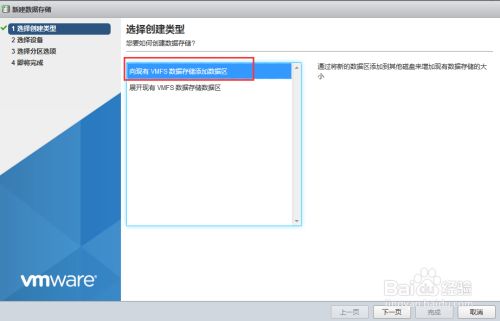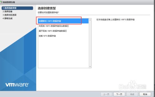 选择“创建新的VMFS数据存储”