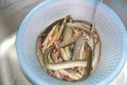 2.先把泥鳅去头,内脏洗净。