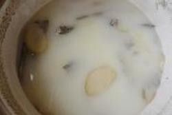 3.水里加入生姜2片,料酒1大勺烧开,把处理干净的泥鳅倒进关火焖2分钟。