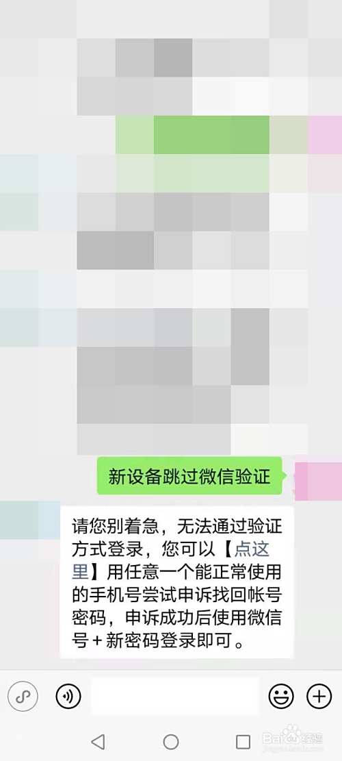 输入新设备跳过微信验证,点击发送,点击点这里选项