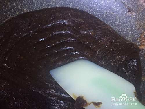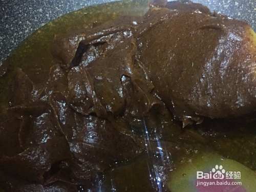 麦芽糖和枣泥放入锅中炒,炒冒泡。