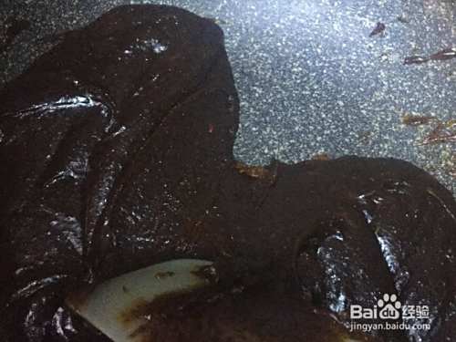 然后不断翻炒,一直炒,炒到不沾锅,不沾刀,然后用刀在上面压一下有印,而且不消失,关火。