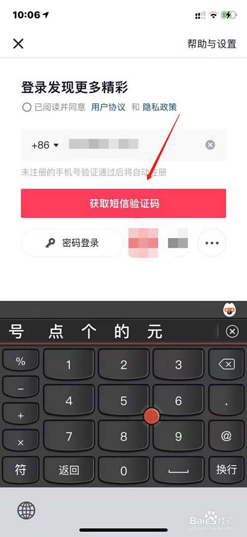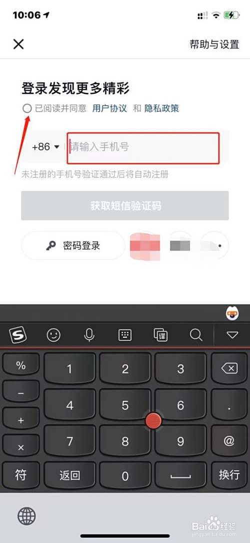 输入手机号码,勾选顶部【已阅读并同意】