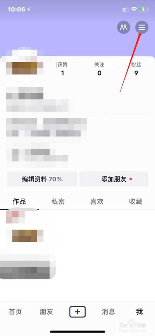 进入抖音个人中心后,点击右上角3条横线