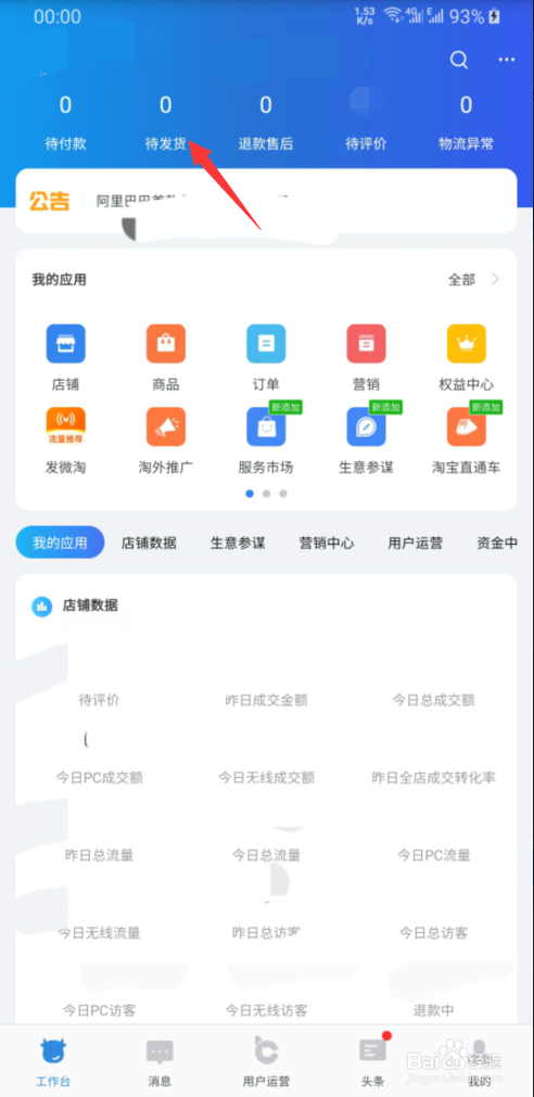 打开手机,进入千牛客户端,点击首页的【发货】。