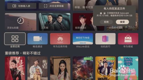 在华为智慧屏上接受文件,并查看,所有文件传递base.apk