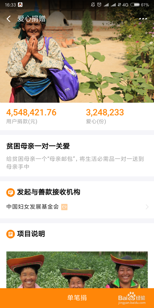 可以看到有两个捐赠项目,每天都有一定的额度,点击第一个没有捐赠满的项目。