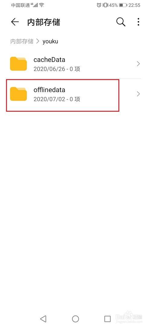 第四步进去youku文件夹之后,点击offlinedata文件夹