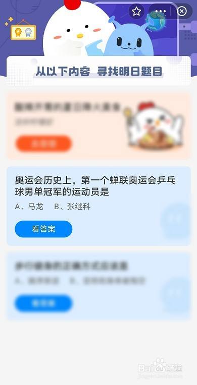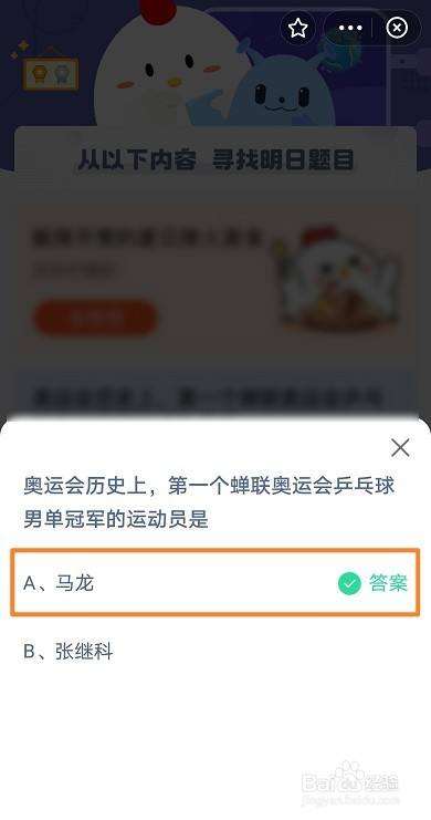 蚂蚁庄园答案:奥运会历史上,第一个蝉联奥运会乒乓球男单冠军运动员是谁。