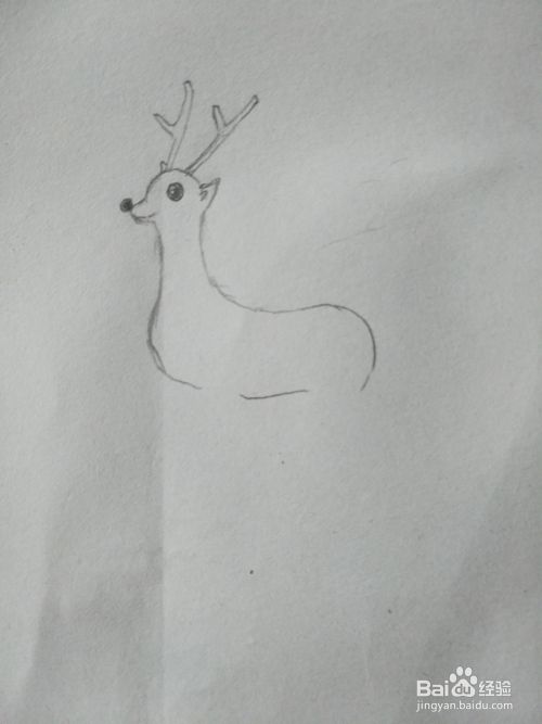 首先,画出梅花鹿的头部形状。画出眼睛、鼻子和耳朵。