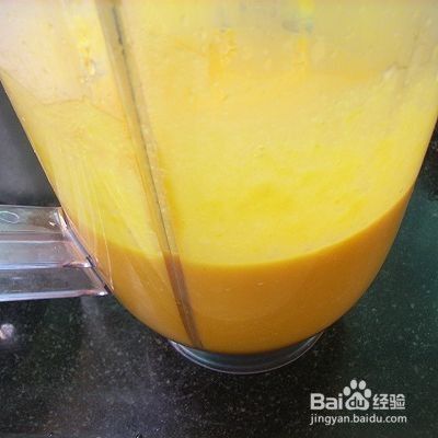 将蒸好的南瓜和玉米粒统统倒入料理机中。