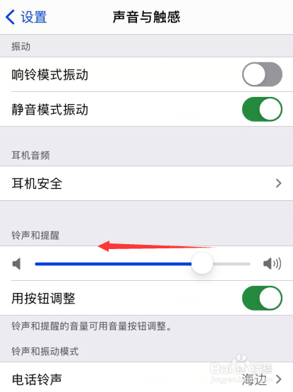 下一步,将按钮向左移动,即可调小微信的提示音;