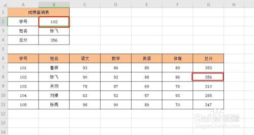 鼠标点击【B2】单元格,更换学号为【102】,浏览下设置效果。如下图