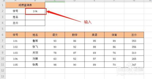 鼠标点击【B2】单元格,并输入一个学号。如下图