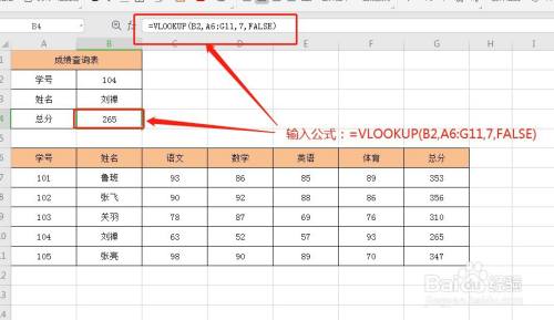 鼠标点击【B3】单元格,并输入公式:=VLOOKUP(B2,A6:G11,7,FALSE),按回车键。如下图