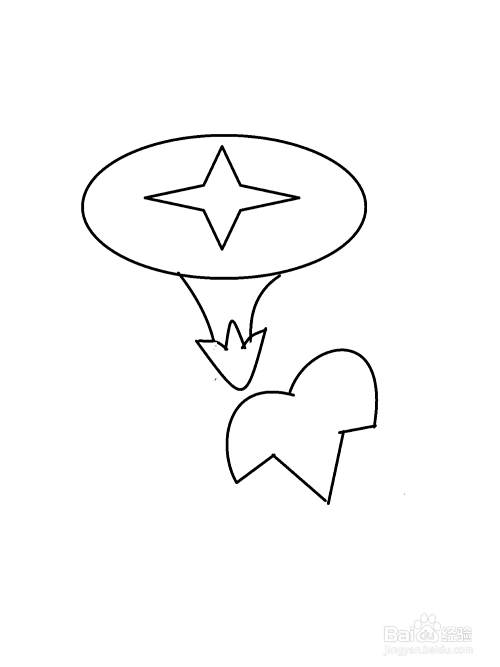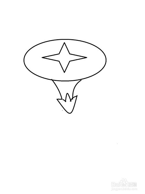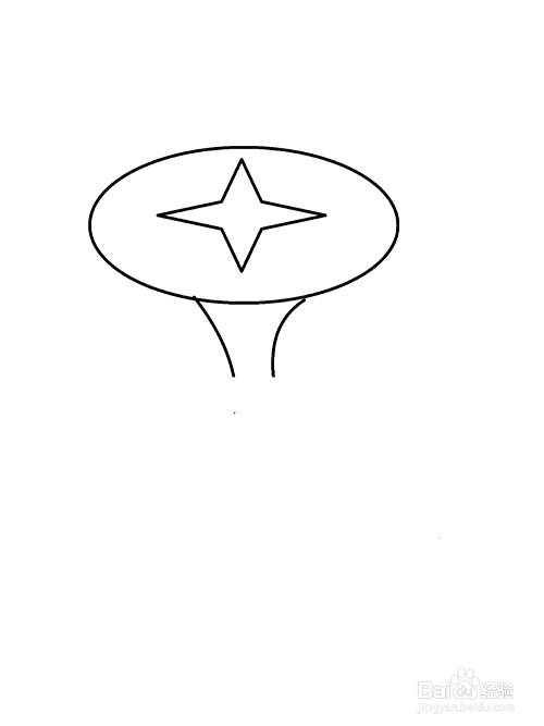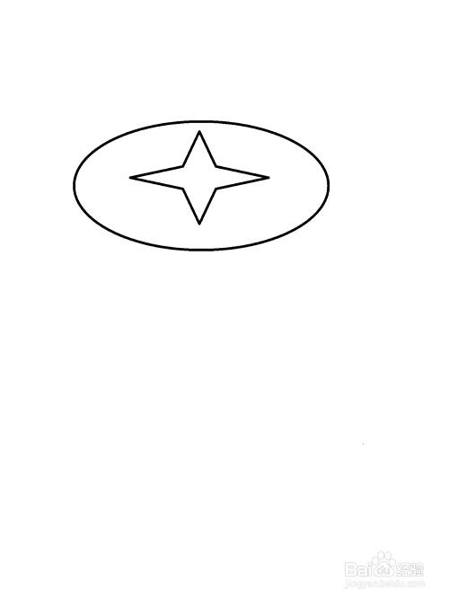 1 先画一个椭圆,在椭圆中间画一个4角星。
