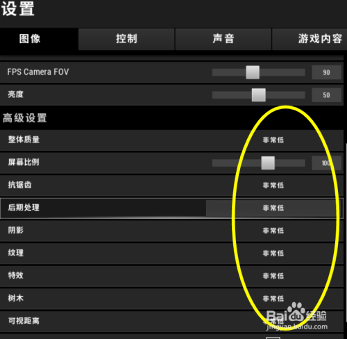 在游戏界面设置我们只需要把图形下的一个设置改为非常低,其他值都是非常低。