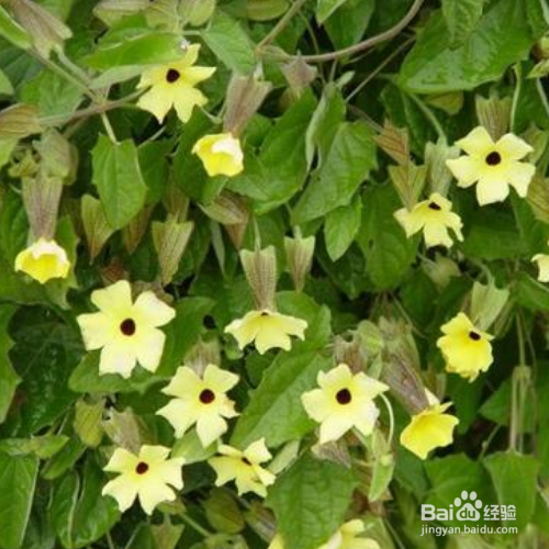 黑眼苏珊是一种原产于南非地区的热带植物,因为他的花心是黑色的所以得名:黑眼苏珊,黑眼苏珊的一大特点就是生长高度接近3米,花朵十分美艳,让人挪不开眼睛。