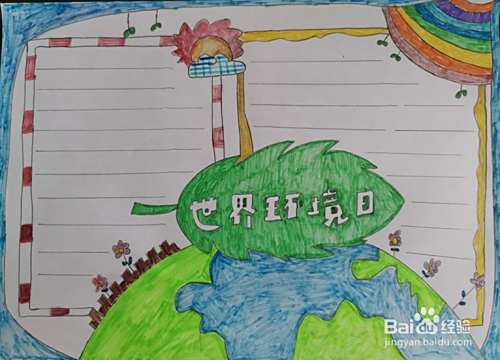 最后在两侧的边框中画上横线,横线上写一些环境日相关的内容,这样一张世界环境日手抄报就完成啦。
