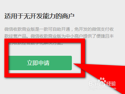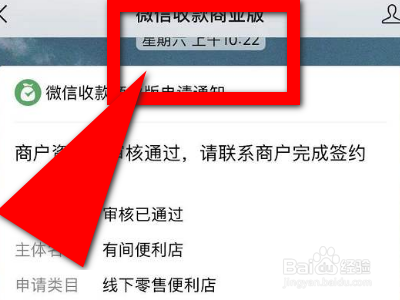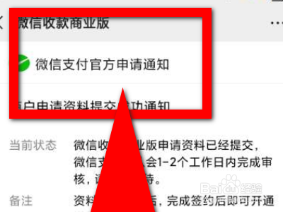 现在我们进入以后,点击获取申请入口然后我们退回到微信的主页面并点击微信收款商业版公众号发的信息,然后我们在微信收款商业版的首页去点击开通。