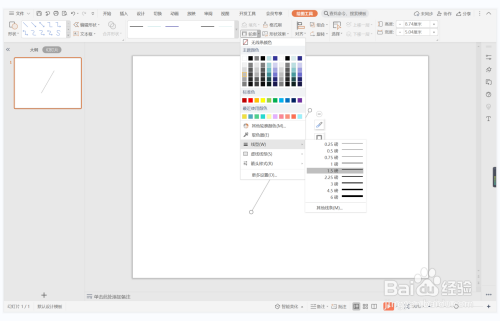 选中直线,颜色填充为灰色,线条宽度设置为1.5磅。