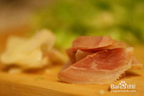 火腿切片、大蒜切片。