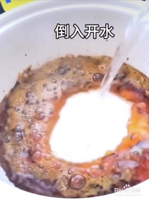 2.炒到焦黄冒泡泡后加入300ml开水;