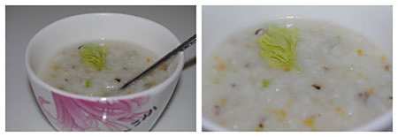 44 米粥煮半个小时,等米开花了,放入焯过的鱼肉,香菇,胡萝卜,姜沫,再煮8分钟,这个8分钟需要有人一直搅粥,以防粘锅。最后放入芹菜沫,稍许片刻,加入盐调味,即可。适合九个月以上的宝宝食用。