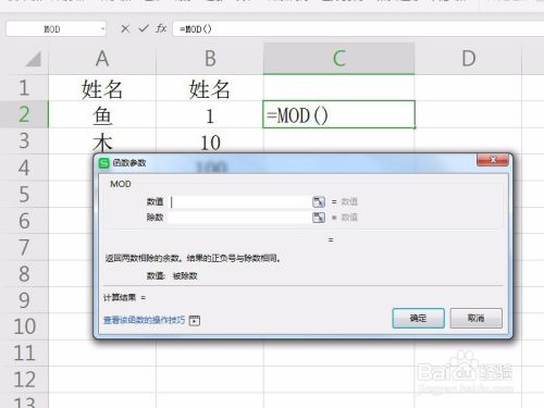 在弹出的参数设置对话框中可以看到Mod函数有两个参数,第一个参数为被除数,第二参数为除数,而函数会得到被除数被除数整除后的余数,如下图所示。