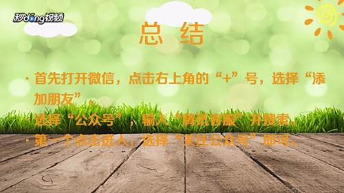 出现的第1个“腾讯客服”点击进入,再选择“关注公众号”就可以了。