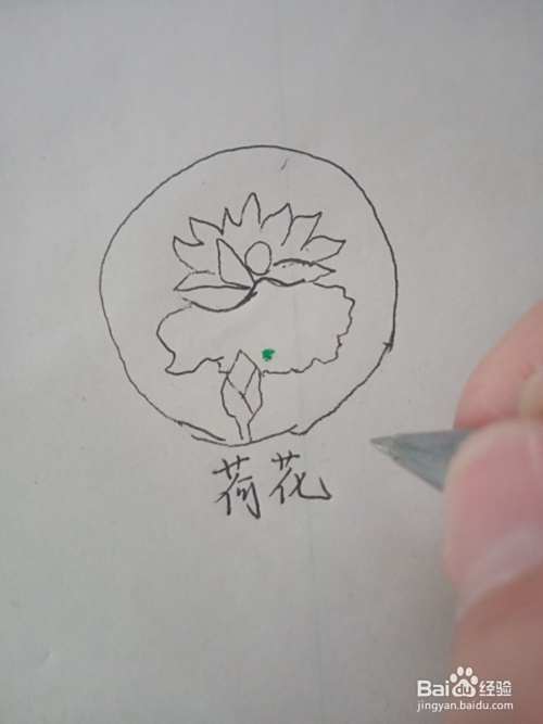 把荷花涂粉色,荷叶涂绿色,写上题目荷花。