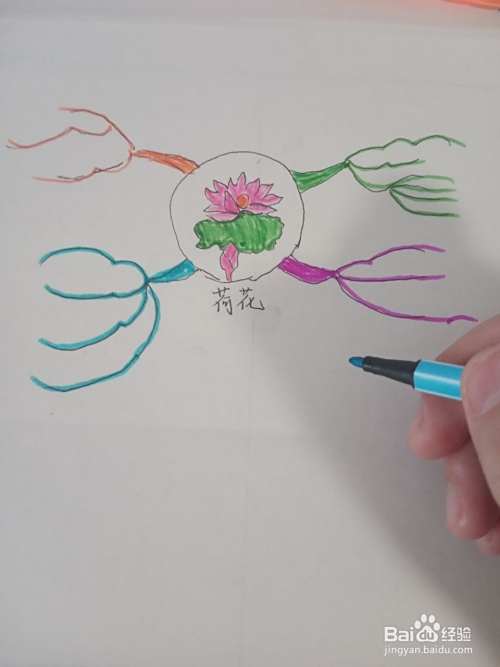 根据课文内容,画出蓝,绿,玫红,黄色的四个分支,并画出很多小分支。