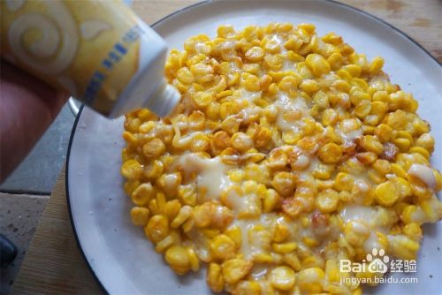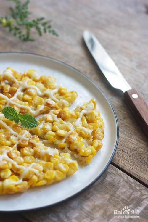在玉米烙上淋适量炼乳或者沙拉酱,切成小片待稍凉即可食用;