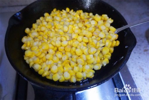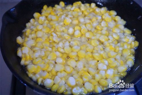 小火慢煎,待玉米粒底部凝结成整片的饼状;