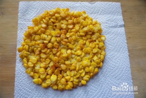 煎好的玉米烙盛出,放在厨房纸上吸去多余的油;