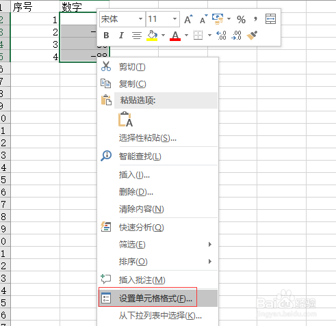 打开需要设置格式的文档,选中相应的数据单元格,右键|设置单元格格式