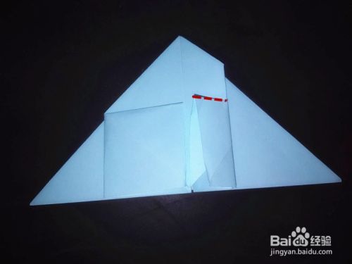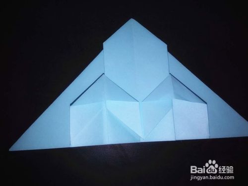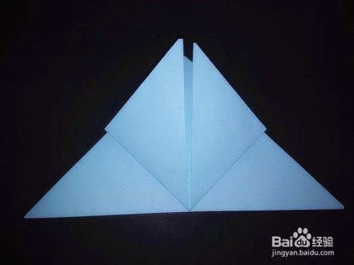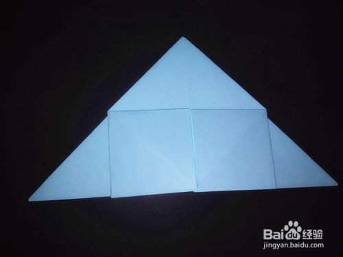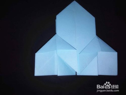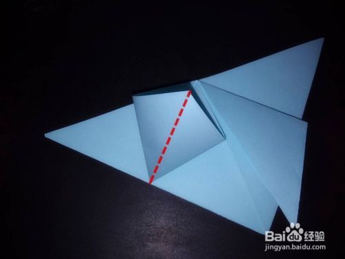 折成此状,如图所示。沿中心线合并在一起,然后在将四角展开。