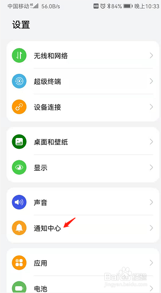 在华为手机设置内,点击通知中心,点击信息,将恶意网址识别右边的开关打开即可开启恶意网址识别功能