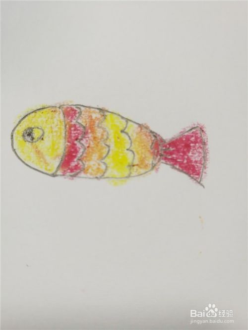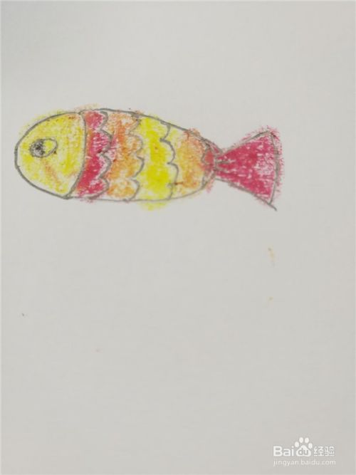 接下来我们就用蜡笔给鱼上色。怎么样?这条鱼像不像小丑鱼啊。