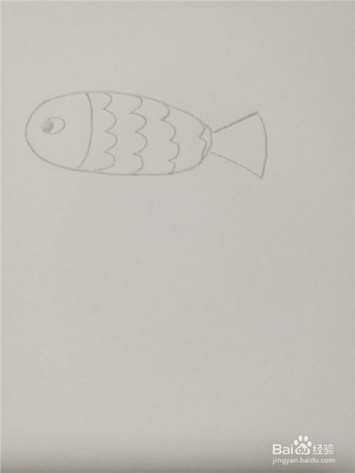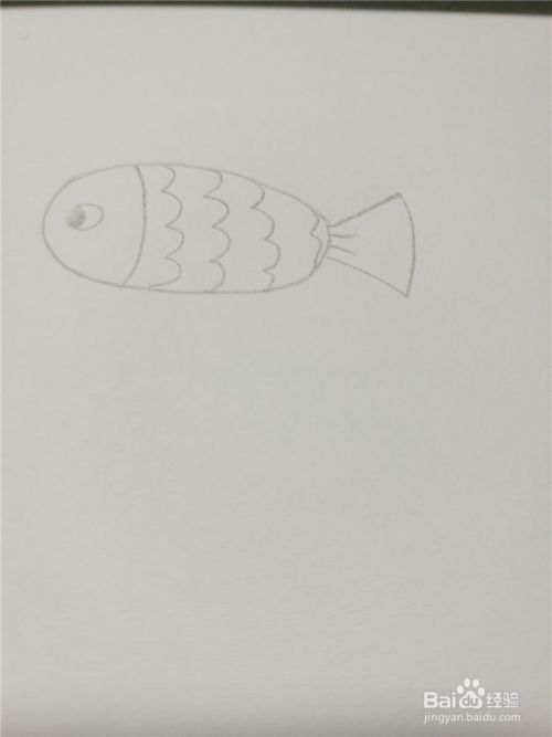 画一个梯形作为鱼尾巴,在鱼尾巴上放上两个短横。