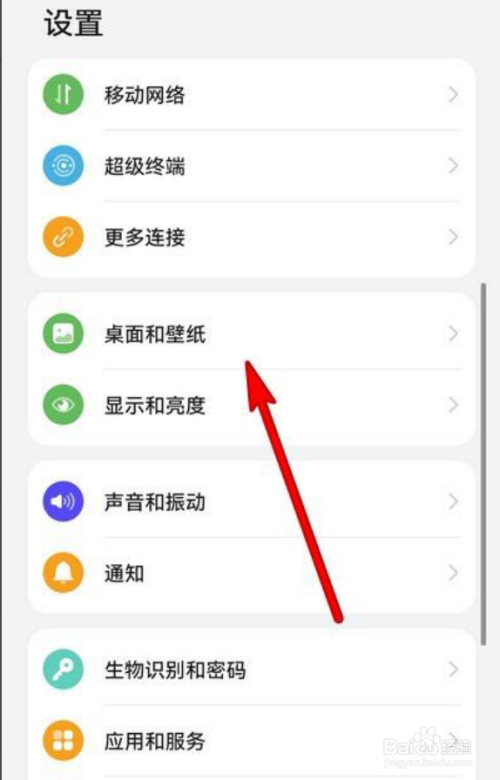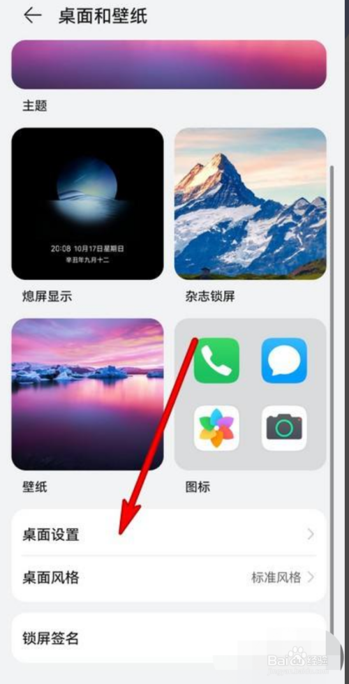 第三步,在桌面和壁纸页面,点击进入桌面设置。