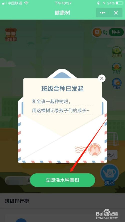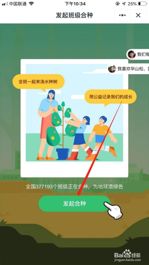 5、点击“发起合种”后,小树就已种下,要记得不断浇水,小树才可以长大。