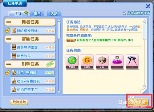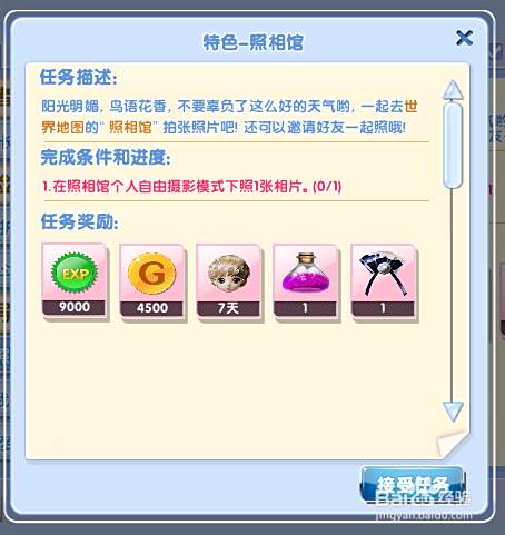 首先我们要接受任务“特色-照相馆”