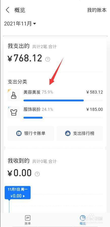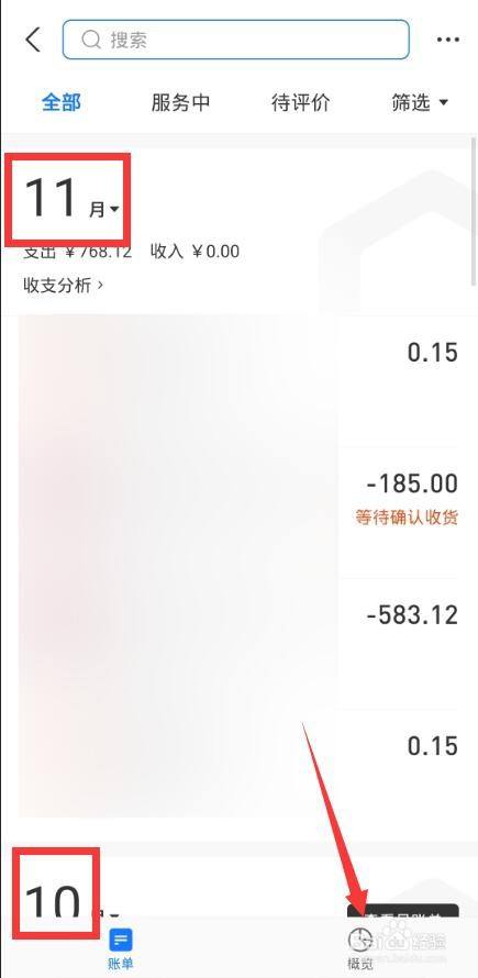 打开淘宝绑定的支付宝,点击我的,点击账单,可以看到每月的消费账单,点击概况,可以看到自己消费在哪些方面。