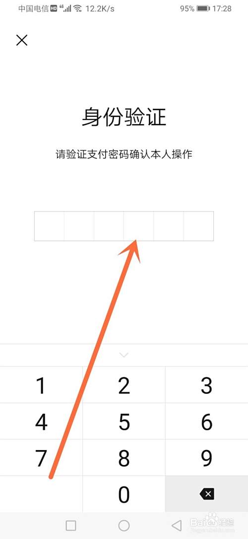 之后,在身份认证页面中,输入【支付密码】进入。如下图所示