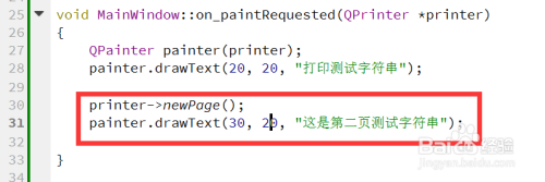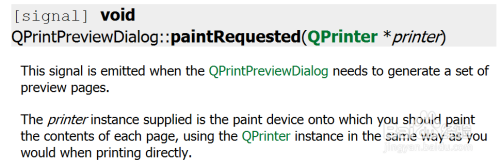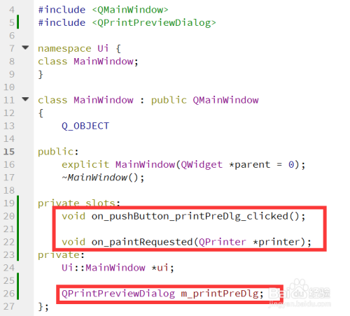 在头文件中定义QPrintPreviewDialog类的变量,以及paintRequested信号对于的槽函数。另一个槽函数是由界面按键触发