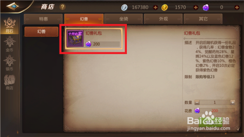 进入商店界面后点击【符石】,在符石中找到【幻兽】选项并点击,在下方就可以看到幻兽礼包了,点击购买即可,这里橙色幻兽的开出率依然是很低的。