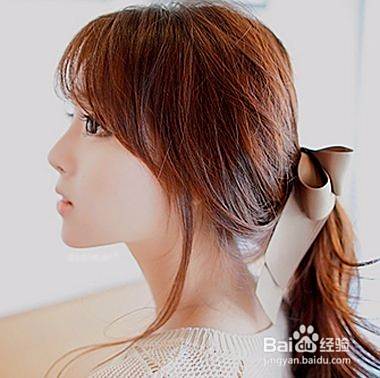 缠绕至发尾用黑色小发夹固定好,这样就囊撤可以这款简单马尾扎发了。