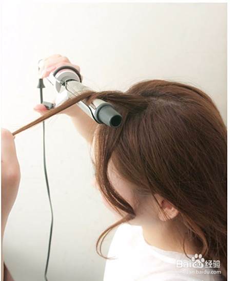 先用加热好的卷发棒将前额的刘海给烫卷